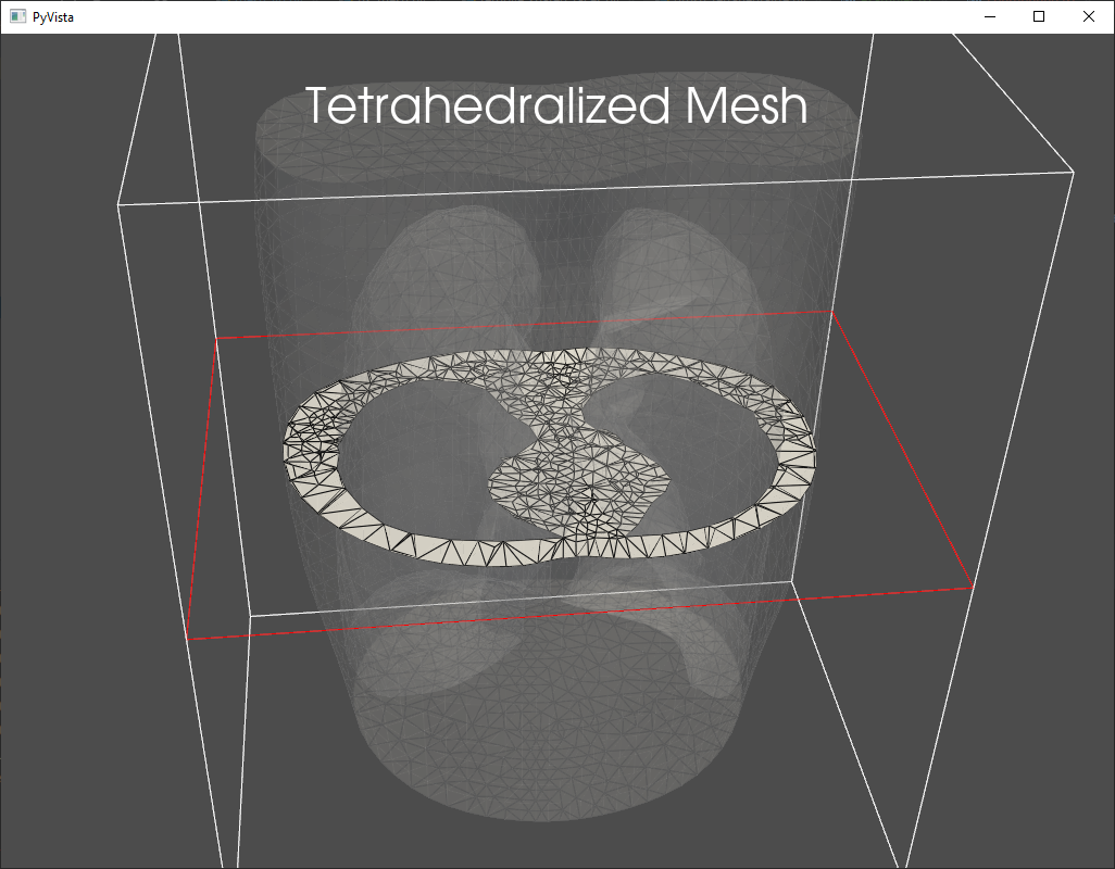 The inner tetrahedralized meshes are combined with the outer to generate the final result.